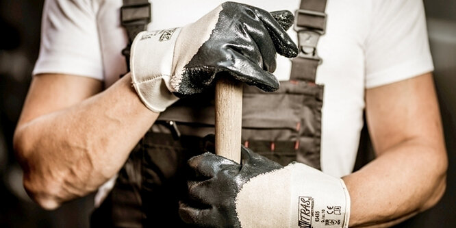Nitras Nitrilhandschuhe, 3/4-beschichtet, Segeltuchstulpe, Innenhand mit Baumwoll-Schlingengewebe, EN 388