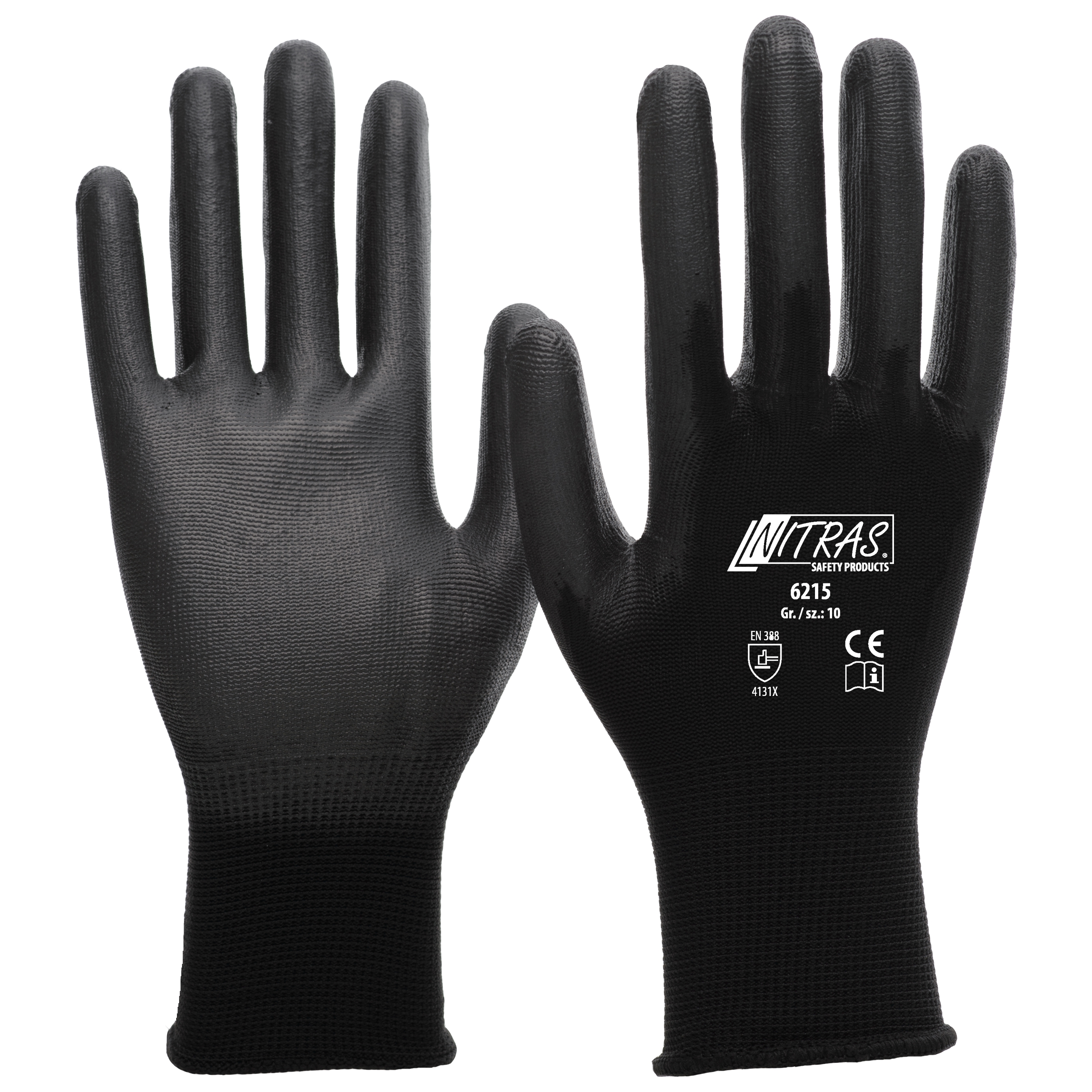 NITRAS Nylonhandschuhe, schwarz, PU-Beschichtung, schwarz (Farbcode: 1000), teilbeschichtet auf Innenhand und Fingerkuppen, Strickbund
