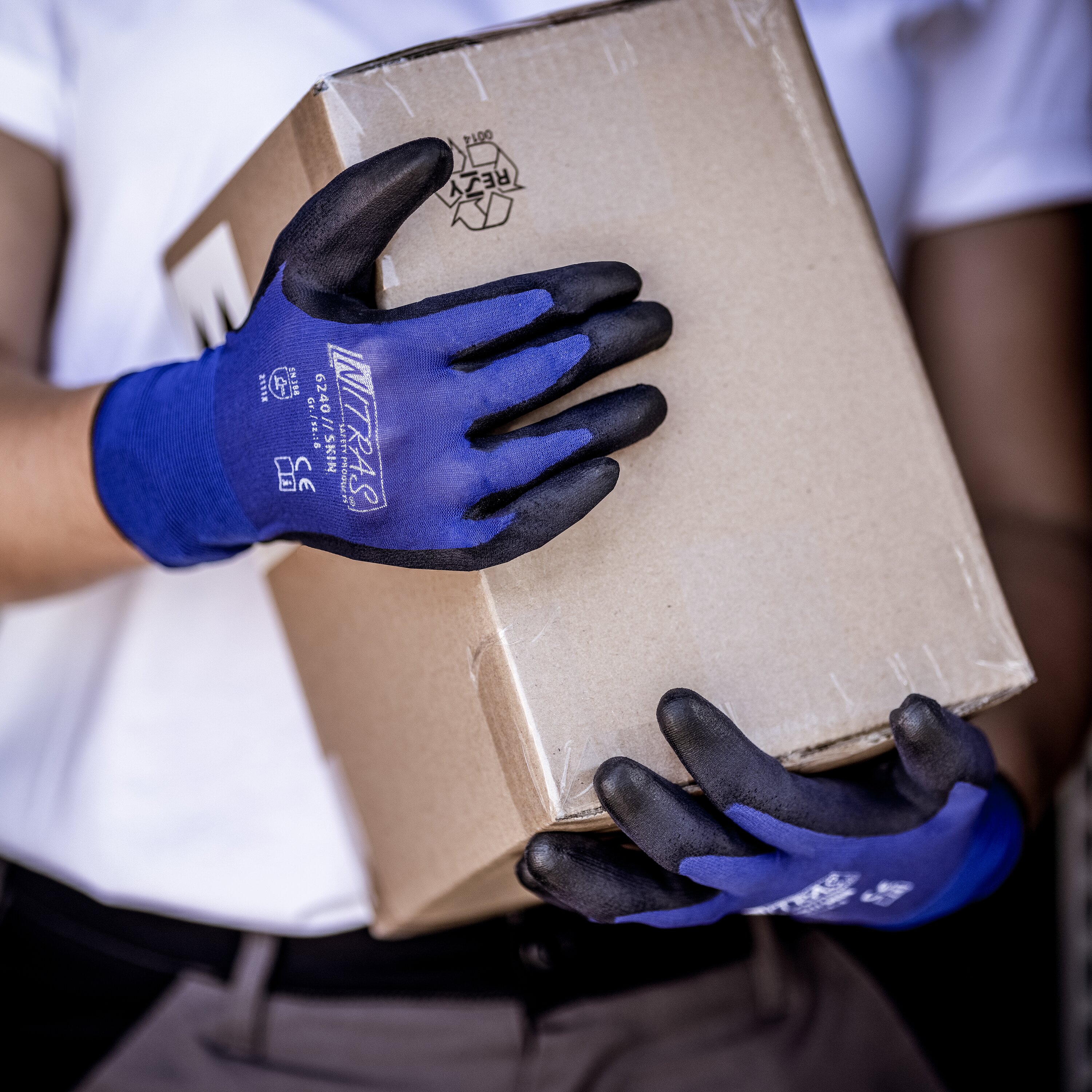 NITRAS SKIN, Nylonhandschuhe, blau, PU-Beschichtung, schwarz (Farbcode: 2210), teilbeschichtet auf Innenhand und Fingerkuppen, Strickbund, perfekter Tragekomfort, perfekte Fingerfertigkeit, 18 Gauge, perfekte Passform, touchscreenfähig