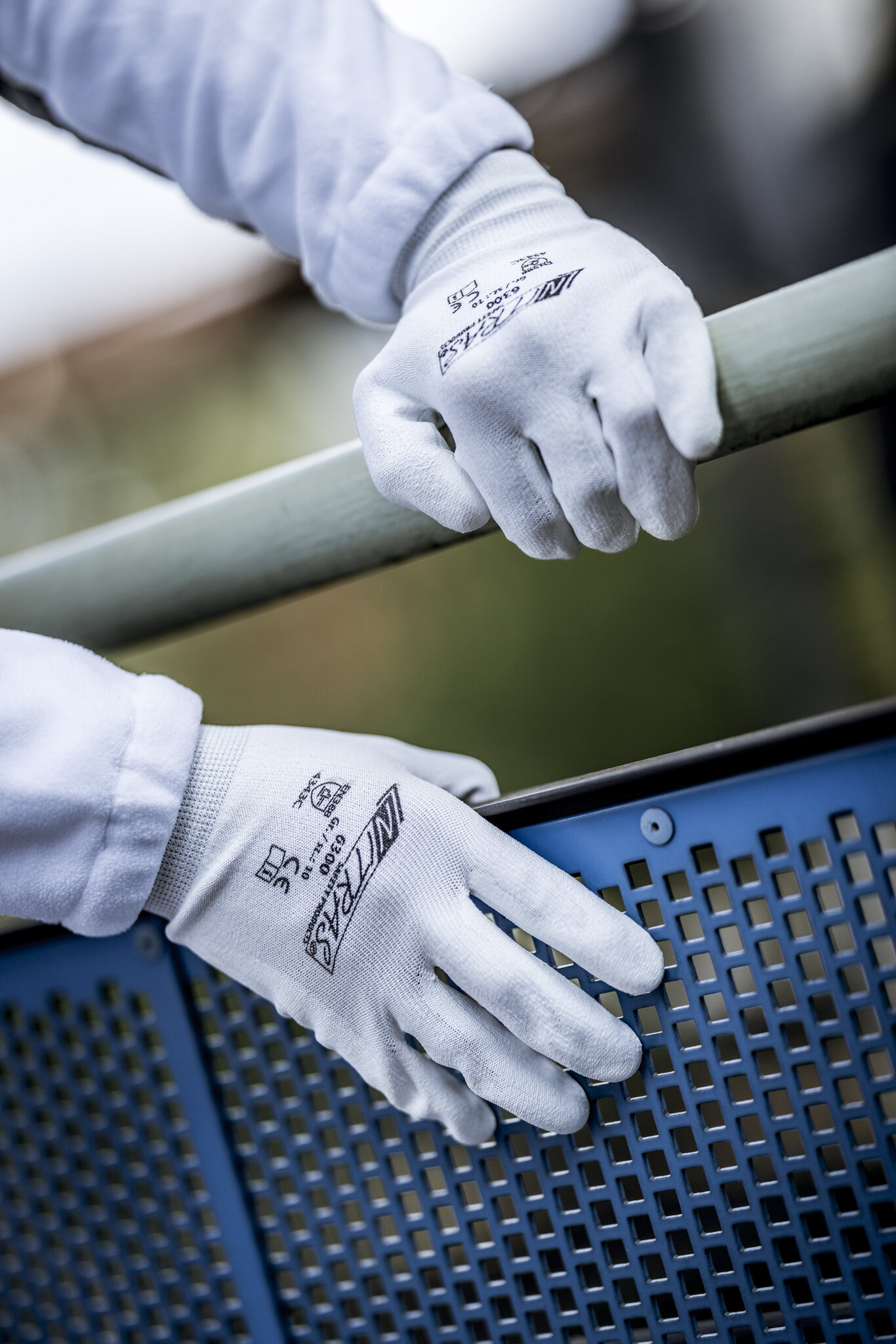 NITRAS Schnittschutzhandschuhe, Spezialgarn, weiß, PU-Beschichtung, weiß (Farbcode: 1100), teilbeschichtet auf Innenhand und Fingerkuppen, Strickbund, hoher Schnittschutz, höchster Tragekomfort