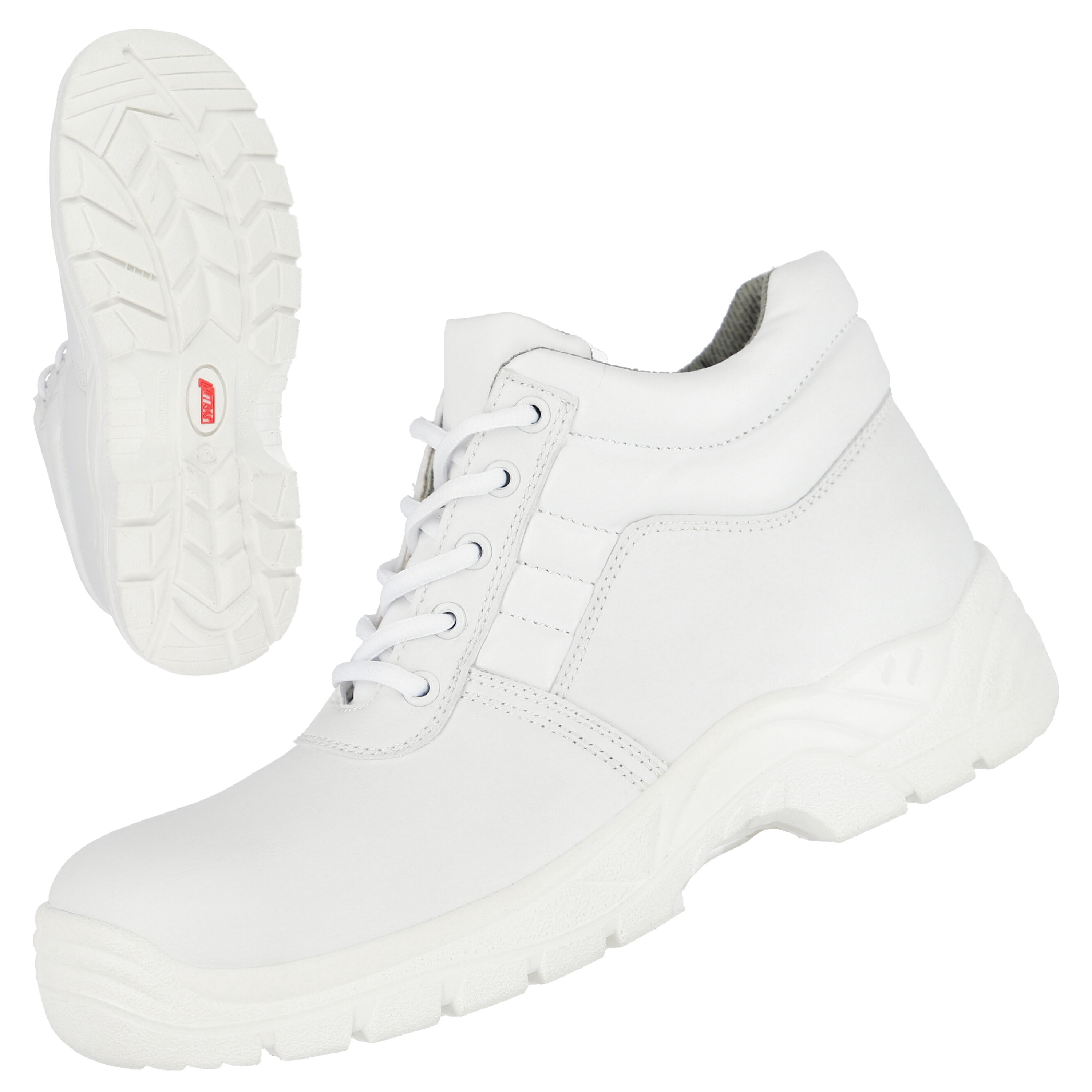 NITRAS CLEAN STEP MID, Sicherheitsstiefel, halbhoch, S2, strapazierfähiges Kunstleder, weiß (Farbcode: 1100), widerstandsfähige PU / PU-Laufsohle, weiß, Zehenkappe aus Stahl, ansprechendes Design, ergonomisch geformte Einlegesohle, bestmögliche Rutschhemmung (SR), Weite 11, gut gepolsterter Schaft für bestmöglichen Halt und Komfort, DGUV Regel 112-191-geprüft, Typ 1, Typ 2, PSA-Risikokategorie II