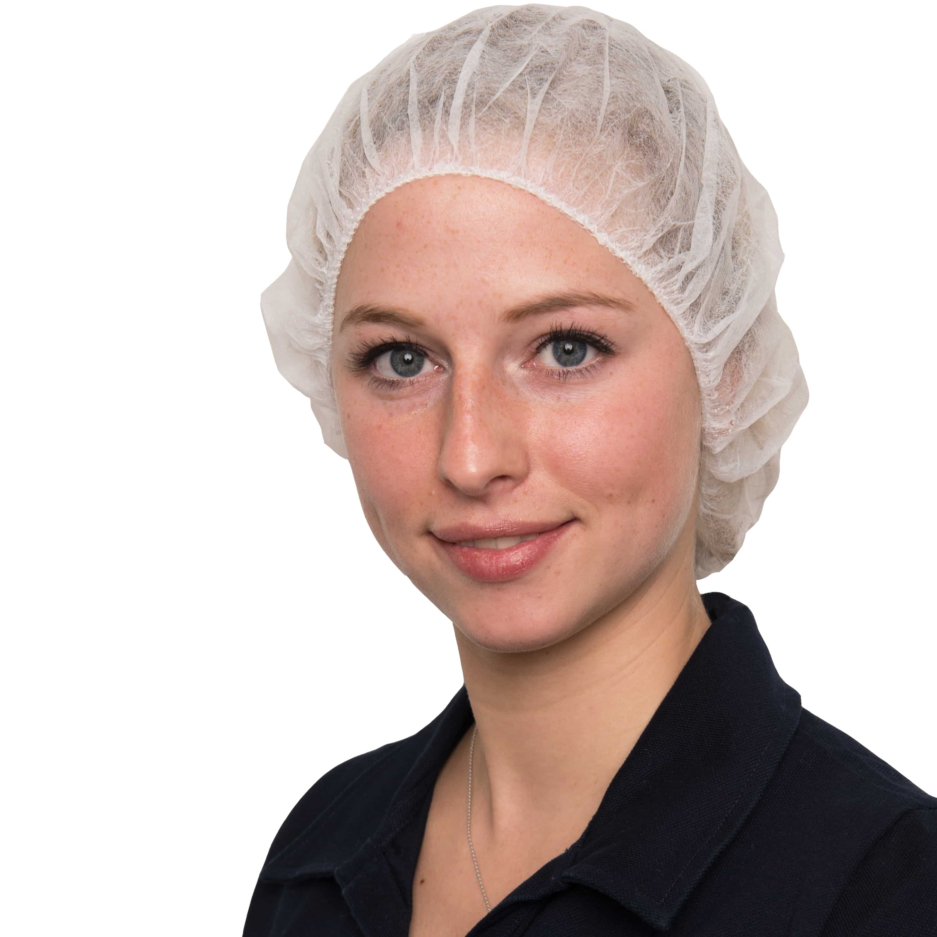 NITRAS Baretthauben, Polypropylen, Durchmesser ca. 58 cm, Vliesstoff, glasfaserfrei und atmungsaktiv, angenehmes Tragegefühl, doppelt baumwollummantelter Gummizug, Beutel à 100 Stück