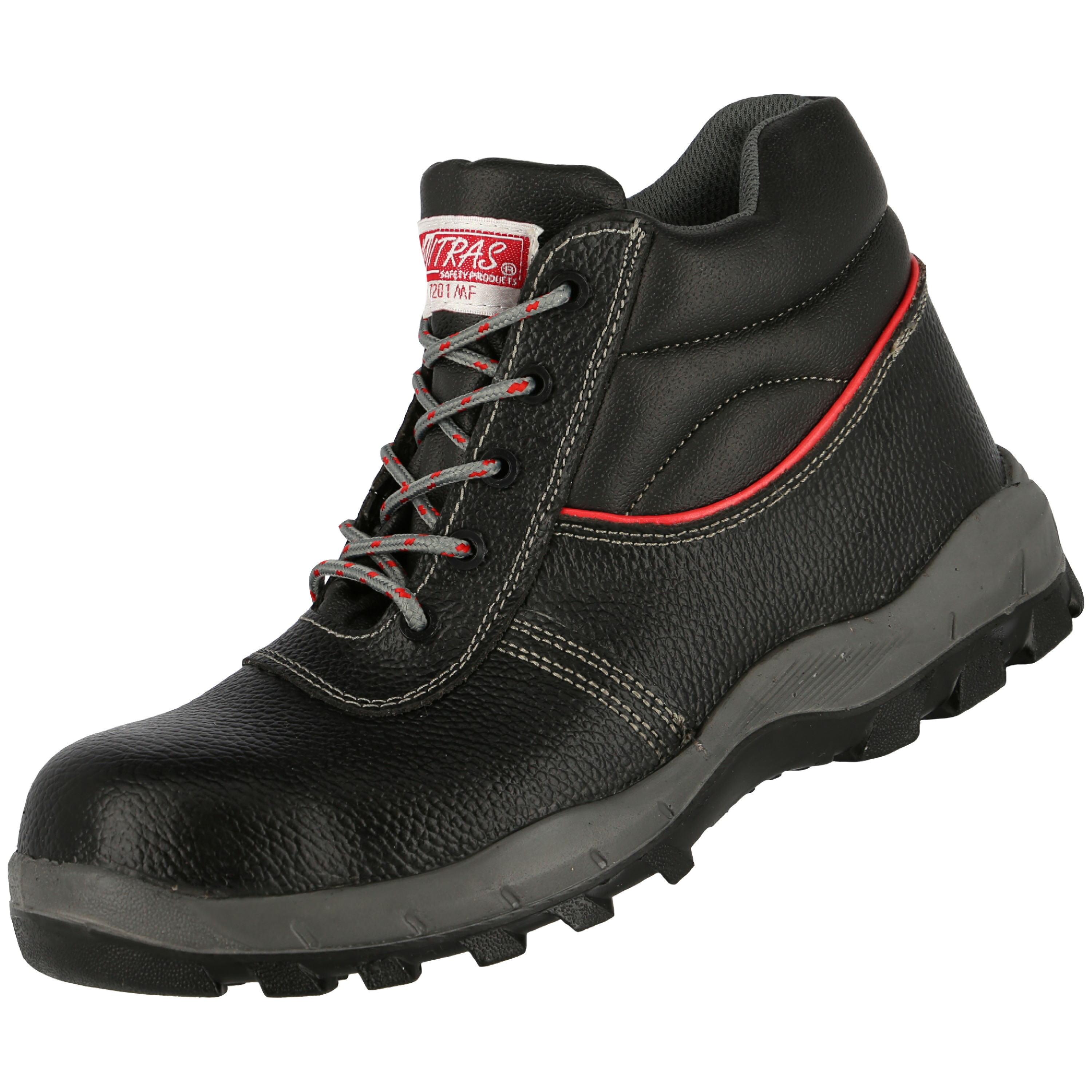 NITRAS STEP MID MF, S3 Sicherheitsstiefel, halbhoch, strapazierfähiges Vollleder, schwarz (Farbcode: 1000), widerstandsfähige PU / TPU-Laufsohle, grau / schwarz, Zehenkappe aus Fiberglas, durchstichhemmende Zwischensohle aus Textil, metallfrei, ergonomisch geformte Einlegesohle, ansprechendes Design, abgeflachte Ferse für eine natürliche Abrollbewegung, bestmögliche Rutschhemmung (SRC), Weite 11, gut gepolsterter Schaft für bestmöglichen Halt und Komfort, DGUV Regel 112-191-zertifiziert