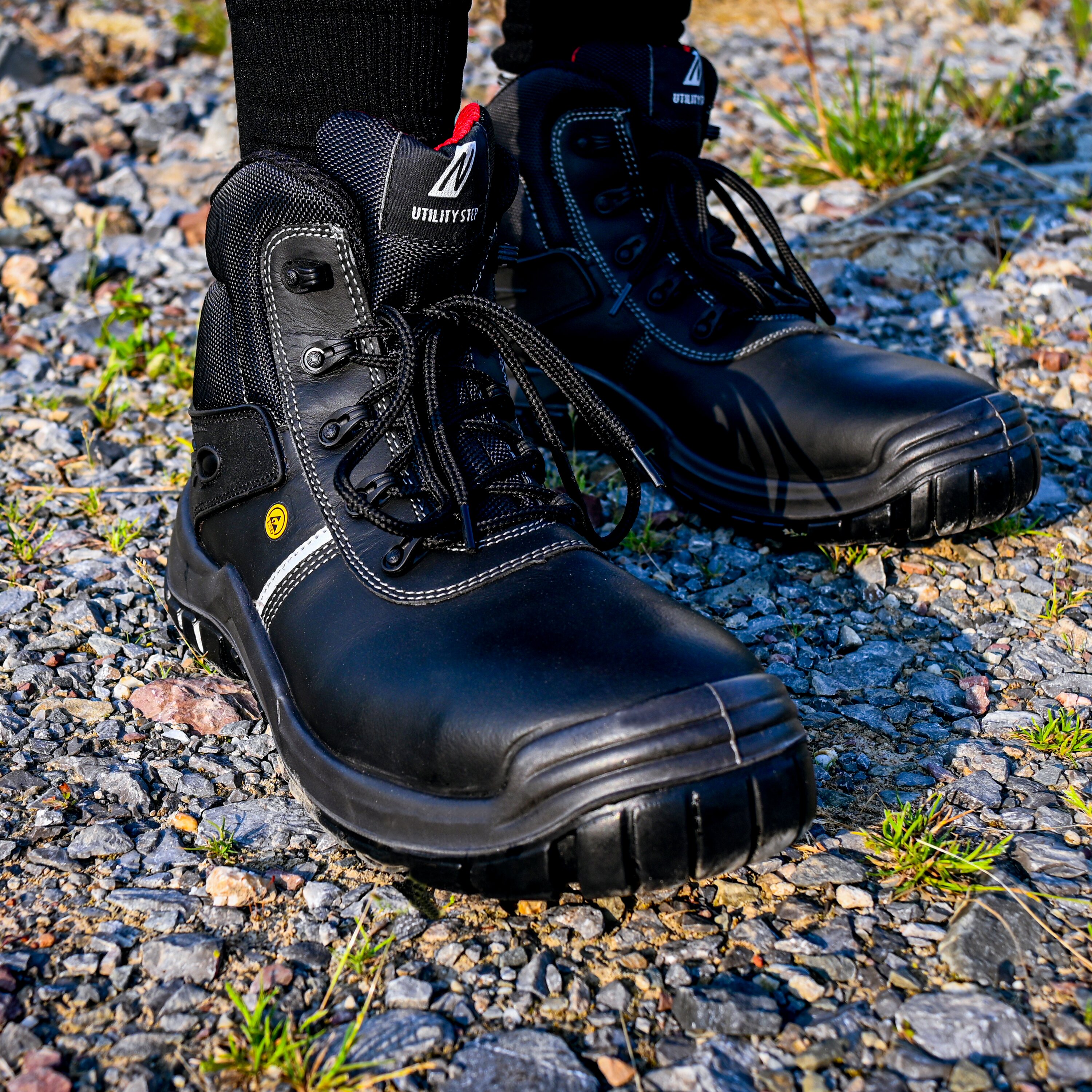 NITRAS UTILITY STEP MID, S3L CI FO Sicherheitsstiefel, halbhoch, strapazierfähiges Action Leather, schwarz (Farbcode: 1000), widerstandsfähige und nicht kreidende PU / PU-Laufsohle, schwarz, Zehenkappe aus Fiberglas, durchstichhemmende Zwischensohle aus Textil, metallfrei, ergonomisch geformte Einlegesohle, sportliches Design, bestmögliche Rutschhemmung (SR), Weite 11, gut gepolsterter Schaft für bestmöglichen Halt und Komfort, Reflexstreifen, Fersenfutter für ein einfaches An- und Ausziehen sowie Fersenverstärkung aus robuster Mikrofaser, DGUV Regel 112-191-zertifiziert, ESD-fähig