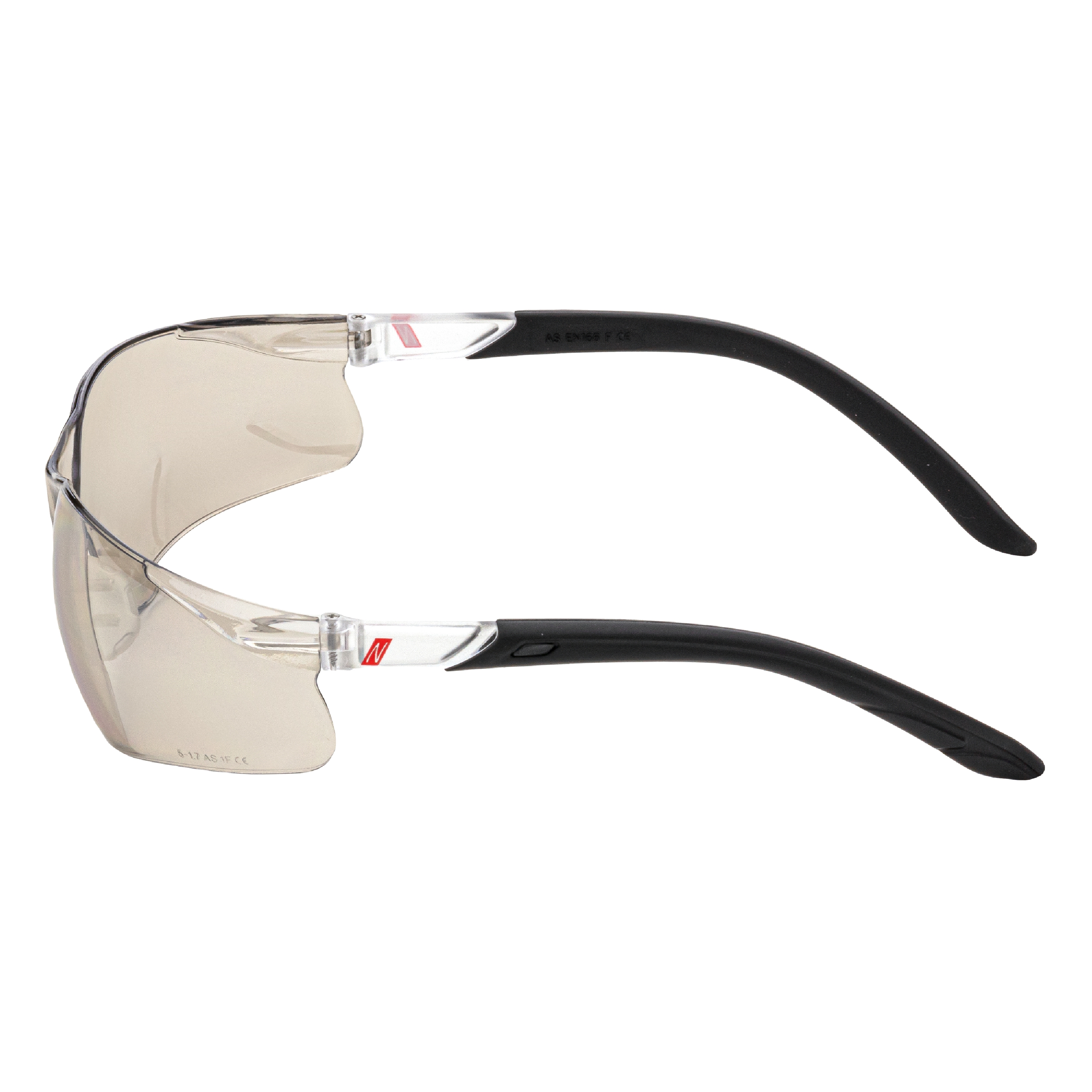 NITRAS VISION PROTECT, Schutzbrille, Tragkörper schwarz / transparent, Sichtscheiben beige (Farbcode: 5210), Tönung hell, silber verspiegelt, Sonnenschutzfilter für den betrieblichen Gebrauch, für langzeitigen Gebrauch bestimmt, weiche Nasenpads, flexible und weiche Bügel, sehr hoher Tragekomfort, UV 400-Schutz.